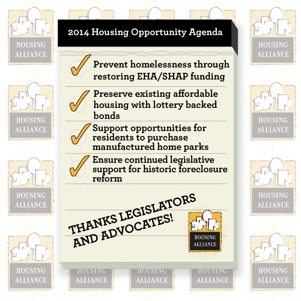 Going into 2014, Neighborhood Partnerships and The Housing Alliance knew that they wanted to focus on the things they didn’t get done in the 2013 session. Or, as Janet put it, they needed to pick up the spare.